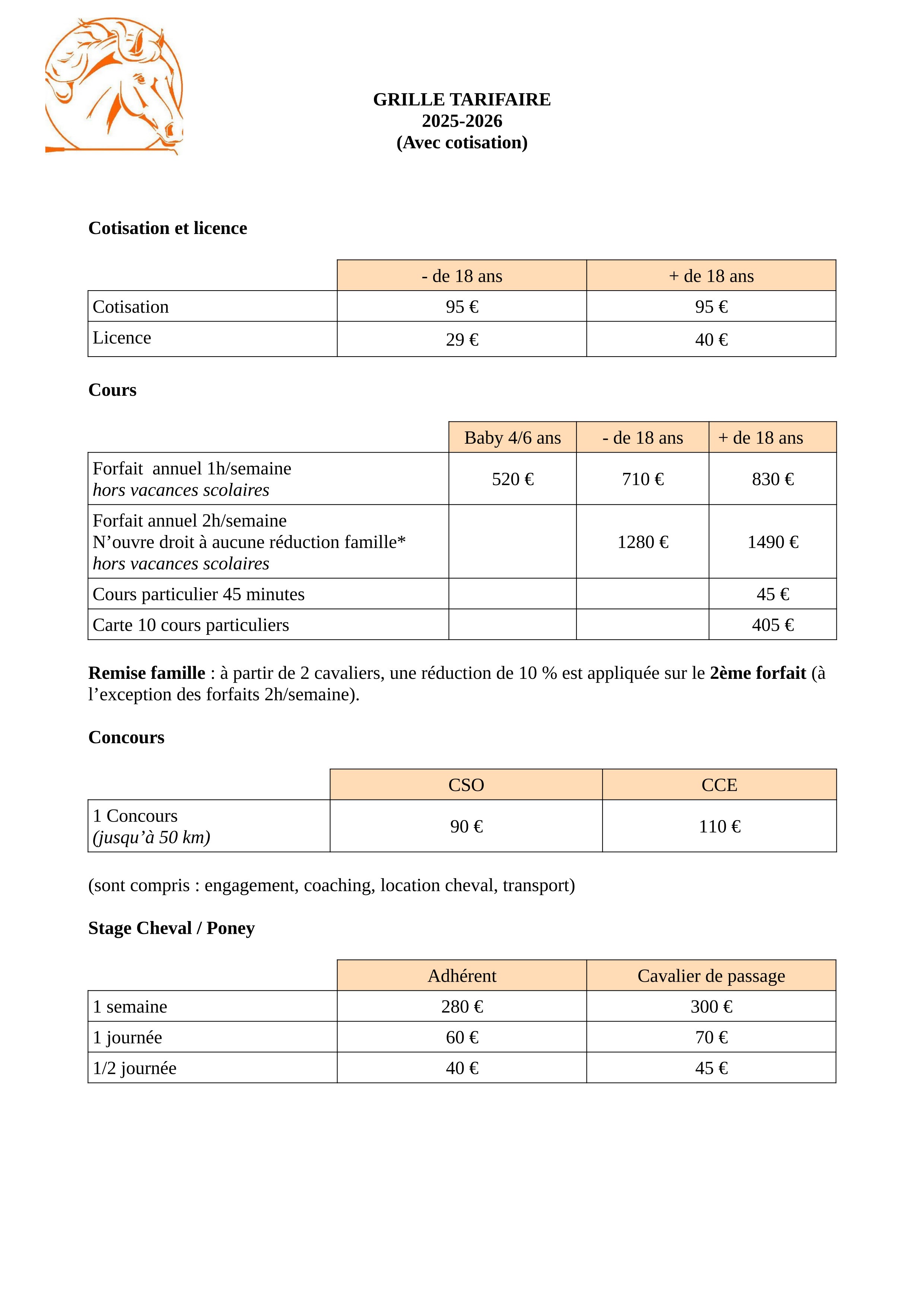 TARIFS 2025 - 2026